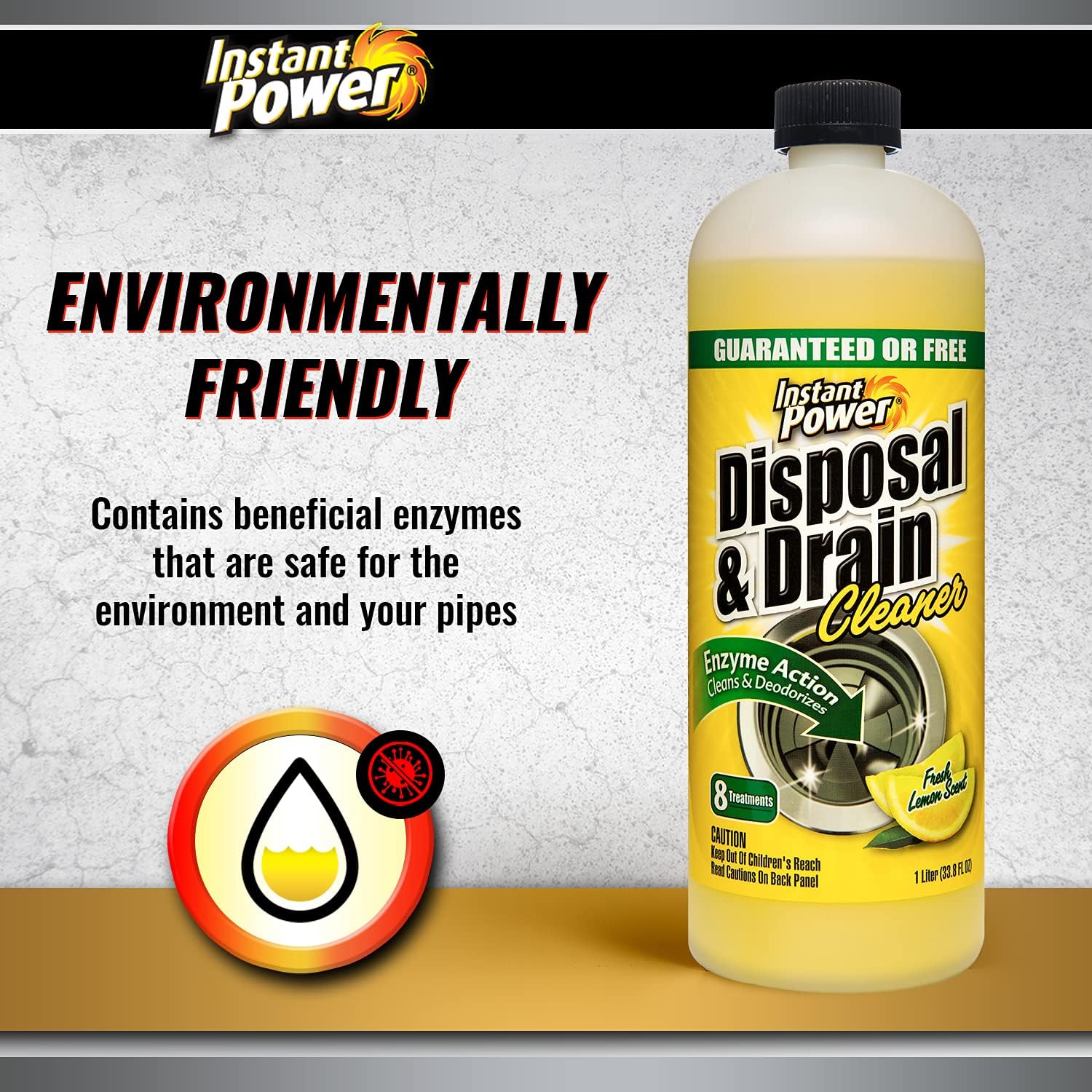 Instant Power Disposal and Drain Cleaner – Liquid Enzyme Clog Remover, Cleans and Deodorizes, Removes Drain Blockages, Fresh Lemon Scent, 33.8 Fl oz, 1 Liter