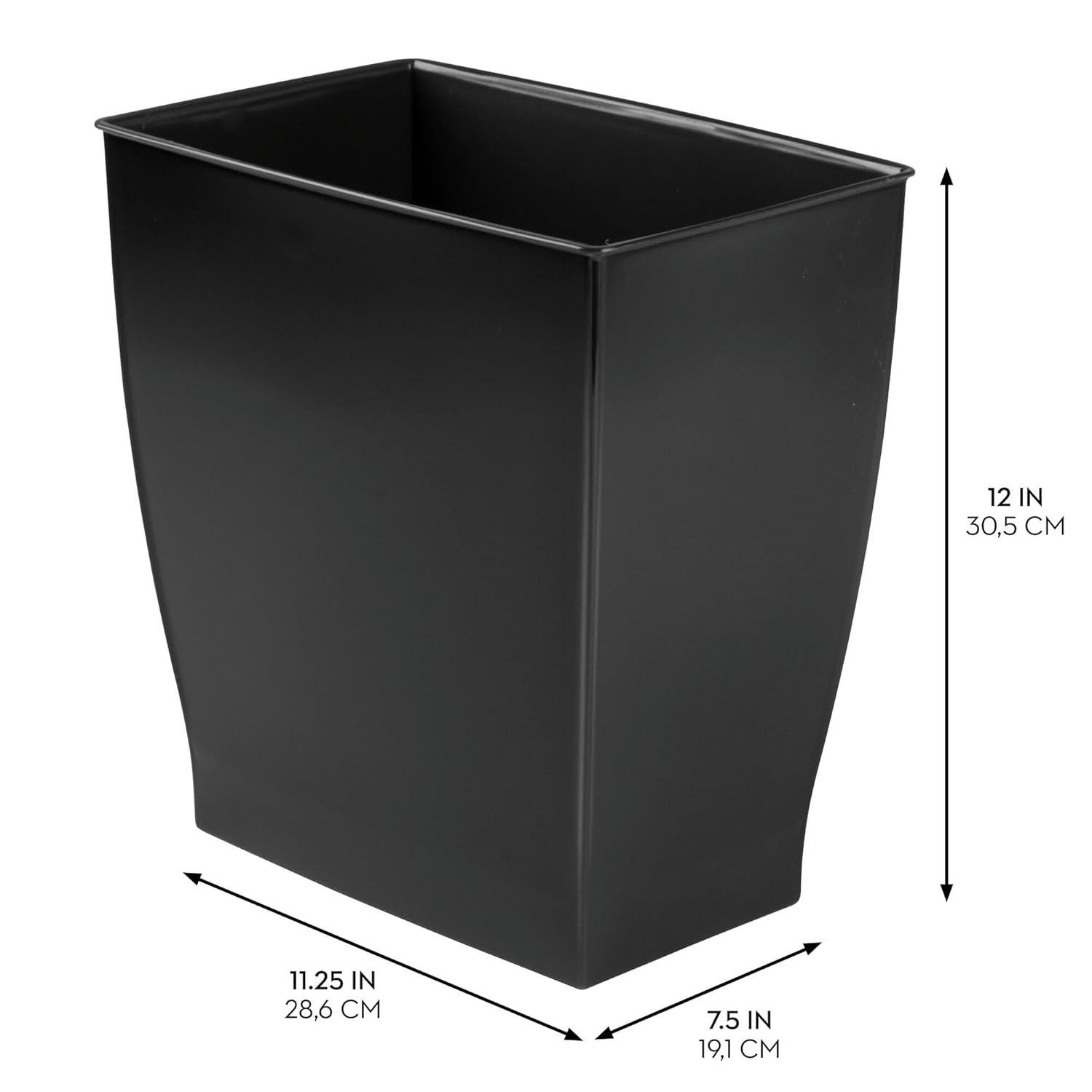 iDesign Small Bathroom Trash Can, Ideal for Primary and Guest Bathroom or Office, Black, Made in USA