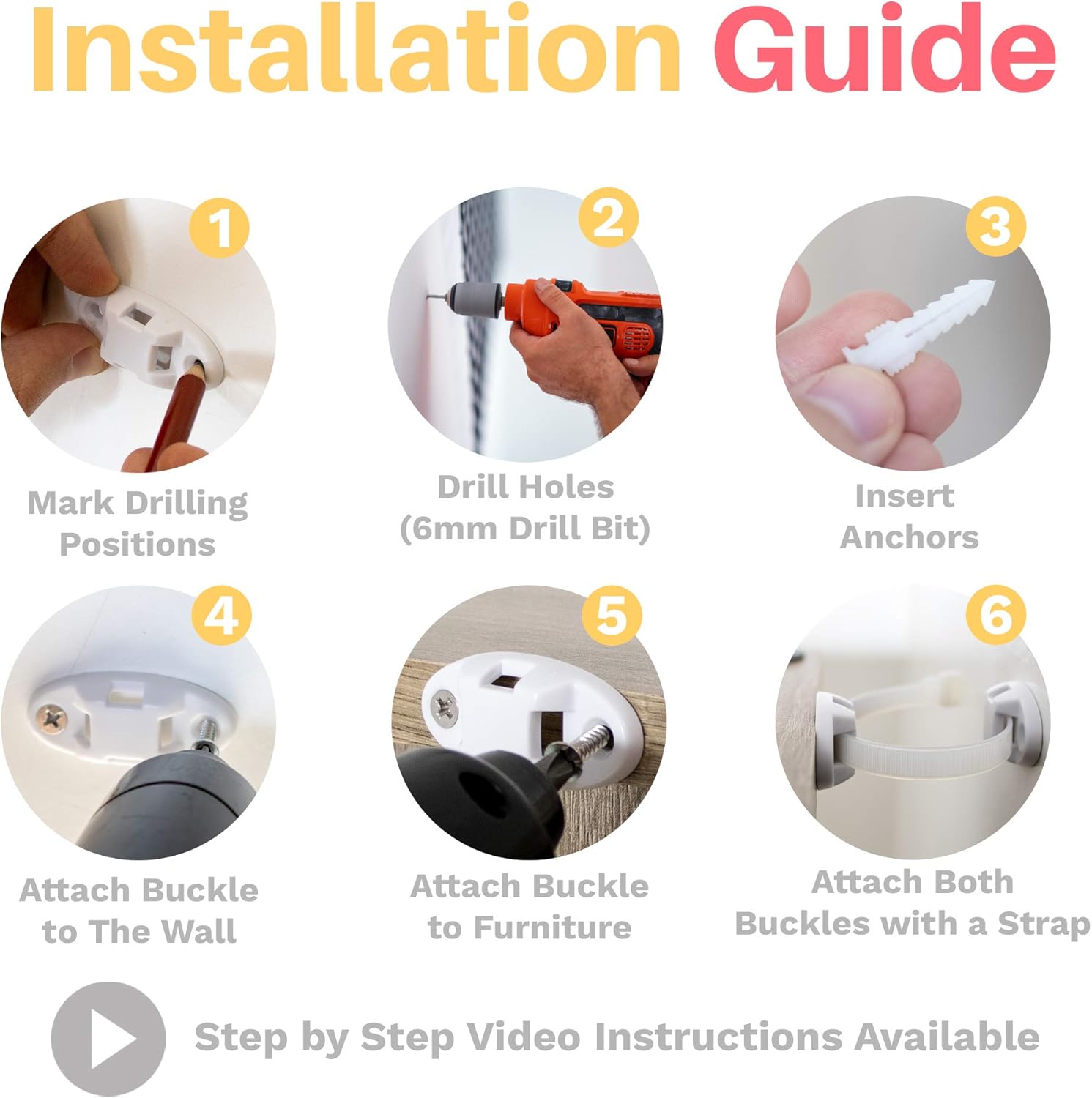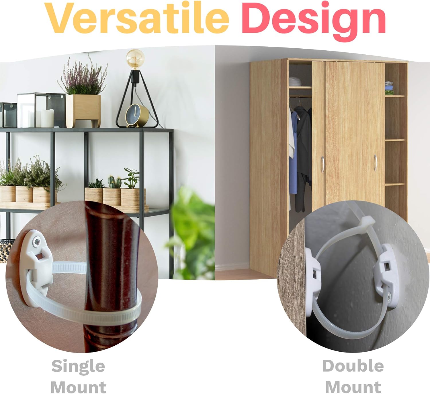 - 【Heavy duty kit】- Each strap of these dresser anchors for baby proofing is designed to support up to 100lbs. With single and dual safety mounting options, for added protection, we advise attaching furniture with two straps to ensure complete safety of your child and your furniture.