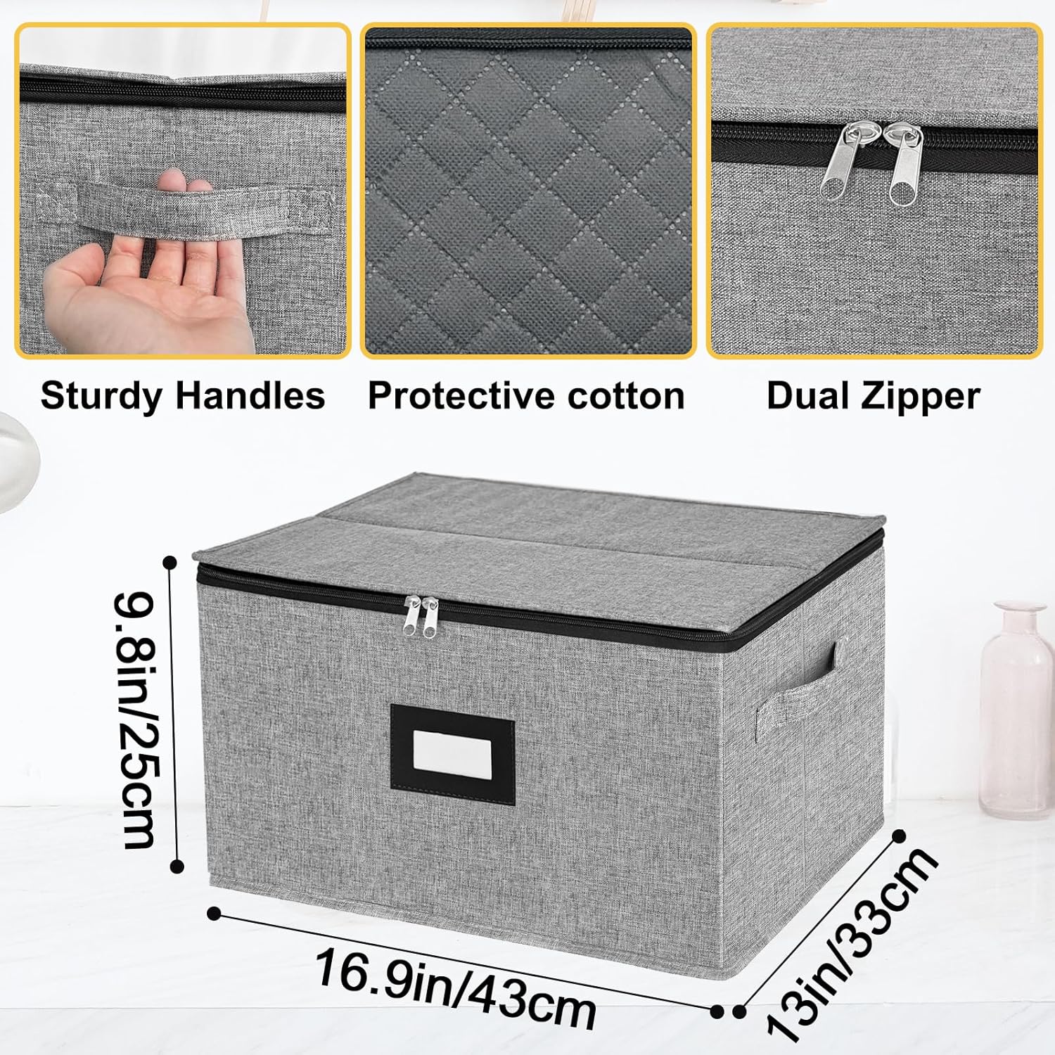 - ๐ท Double top-grade stong zipper - Dinnerware storage organizers equipped with #5 stainless steel zippers which are hard to be broken,top-grade,fasion design,two-way zippers allow it to easily slide along the colsure when in use.