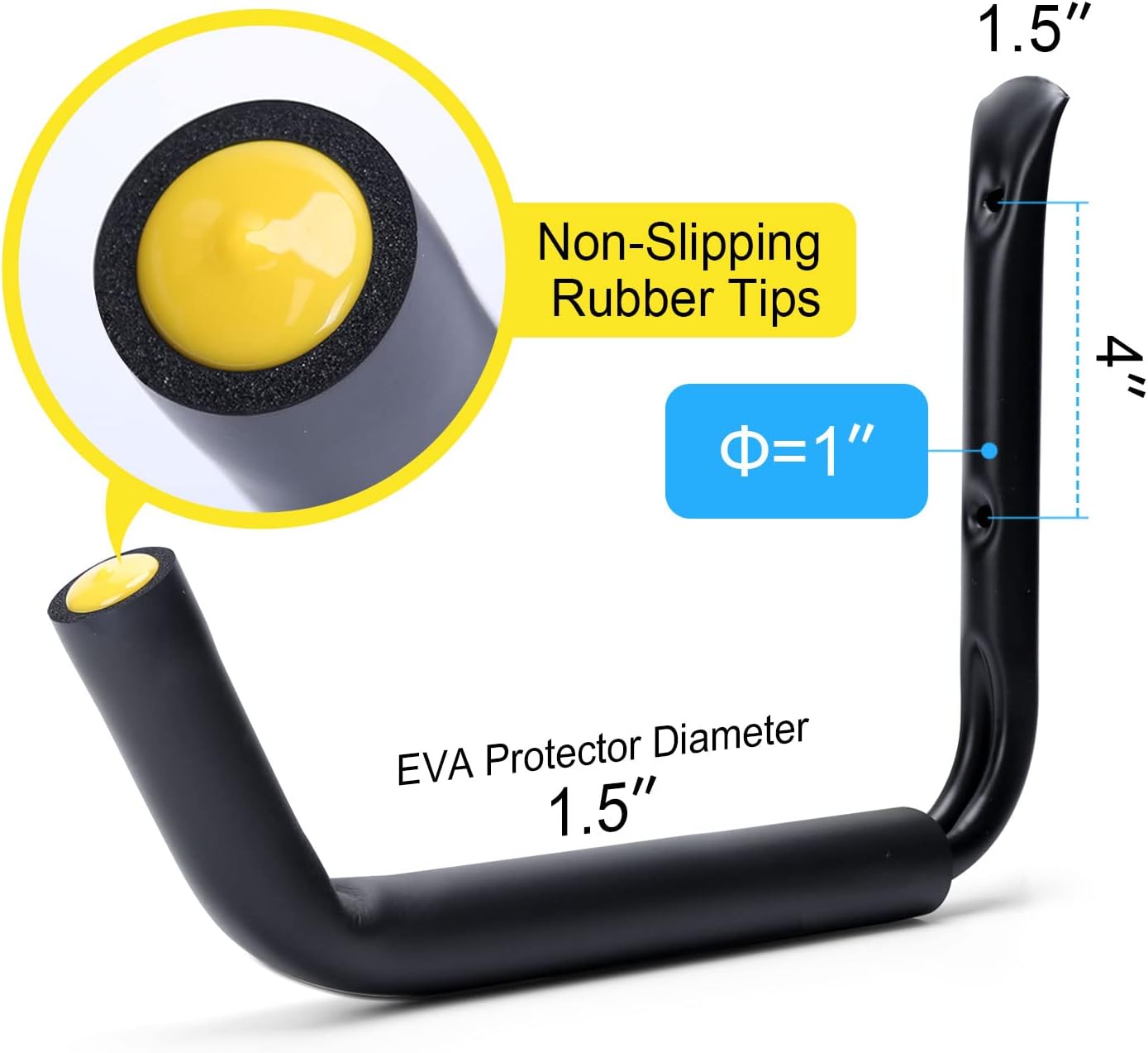 - Longer, Thicker, Heavier-Duty: The garage storage hook is 15 inch long, longer than most common short hooks. And it has 0.2 inch thick EVA protector to buffer the pressure from the heavy item. Thus, you can hang on heavier item on them. Hold 100 pounds or more when properly installed