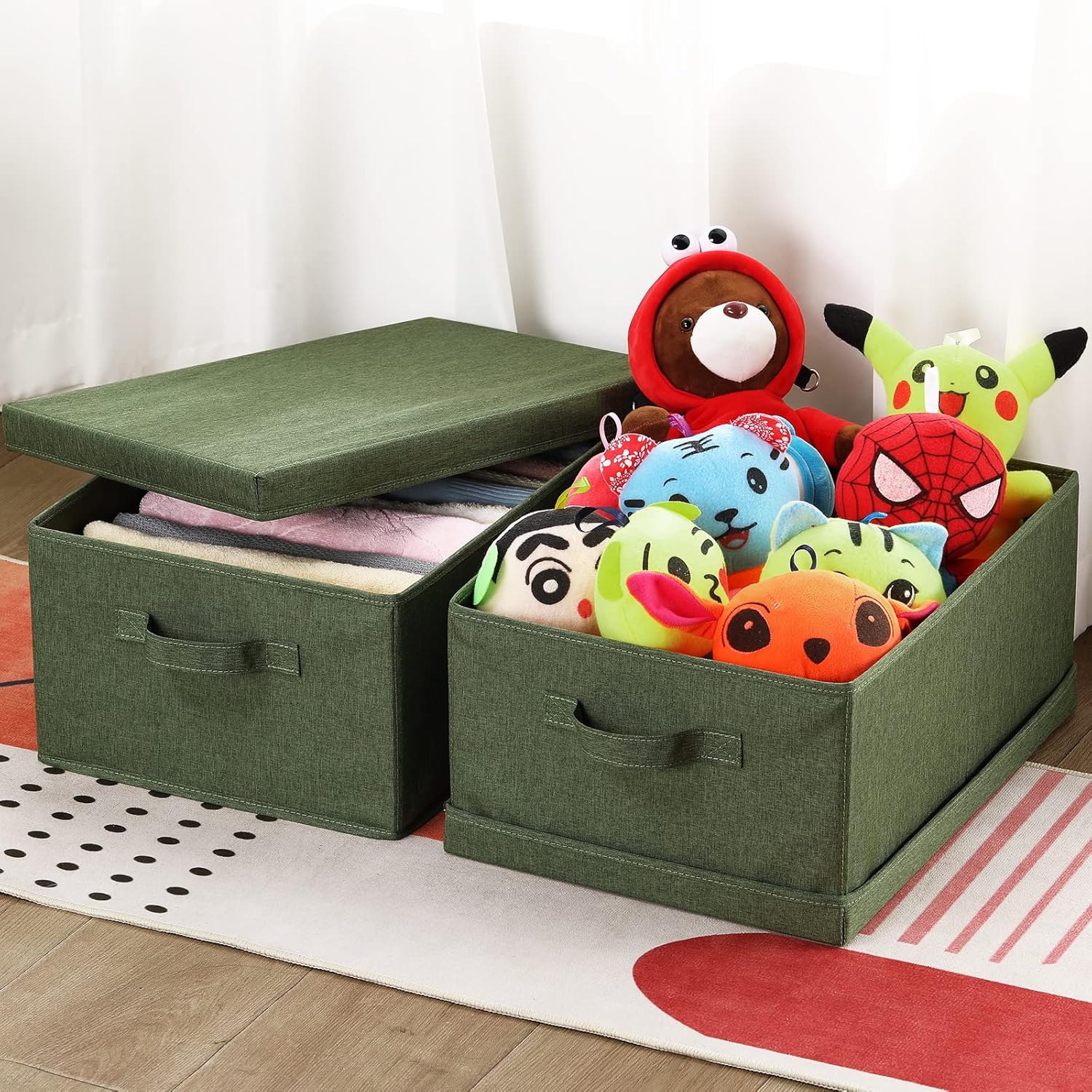 - REMOVABLE LIDS --- These carefully-made storage baskets are equipped with removable lids, which are necessary and can work pretty well in keeping your clean clothes and other items away from dust or water splashes. They can also function nicely in covering the messy.