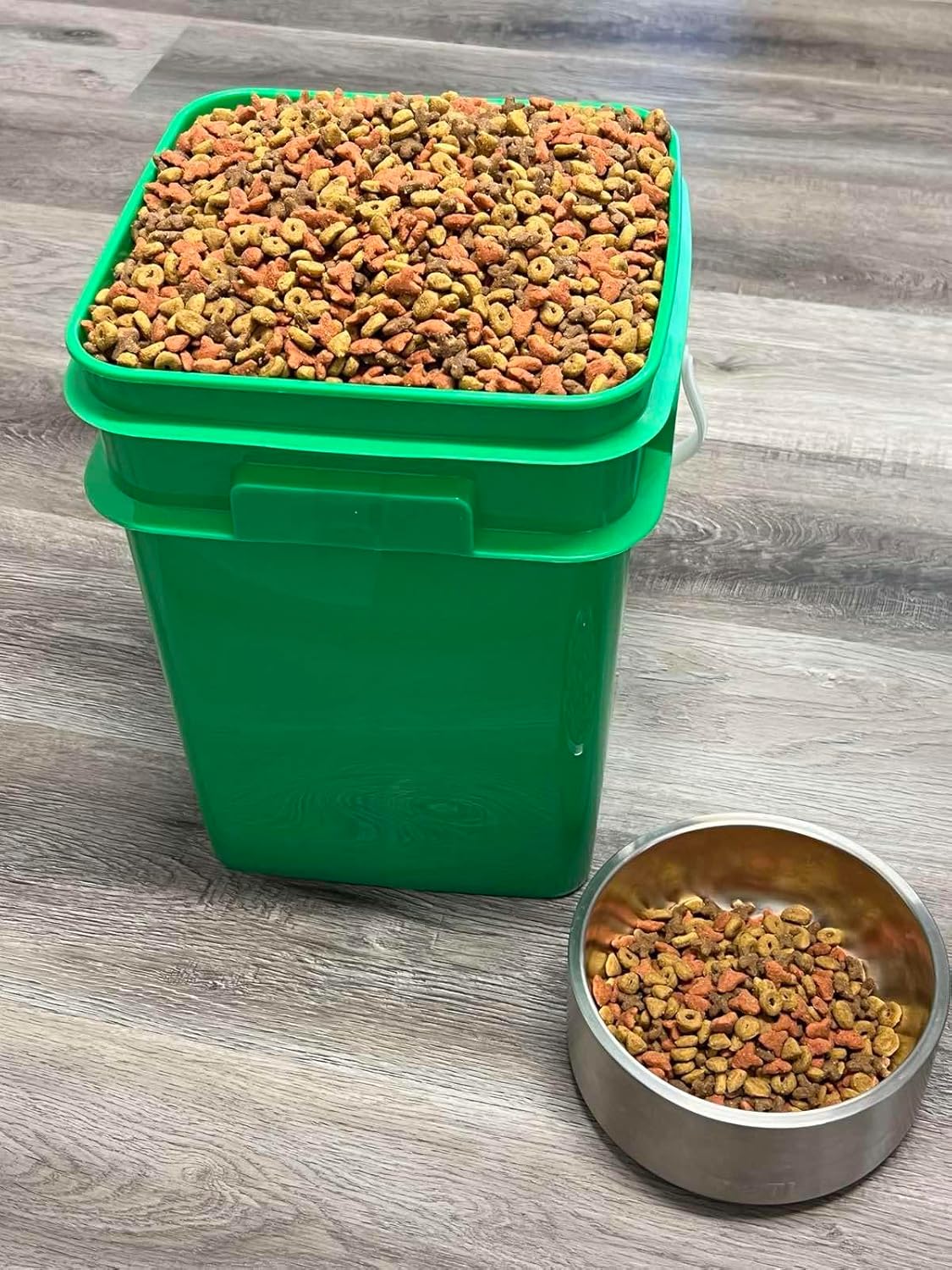 - Buckets good for storing dry food like beans, rice, flour, sugar, salt, pasta. Honey. Pet food. Livestock feed. Birdseed.