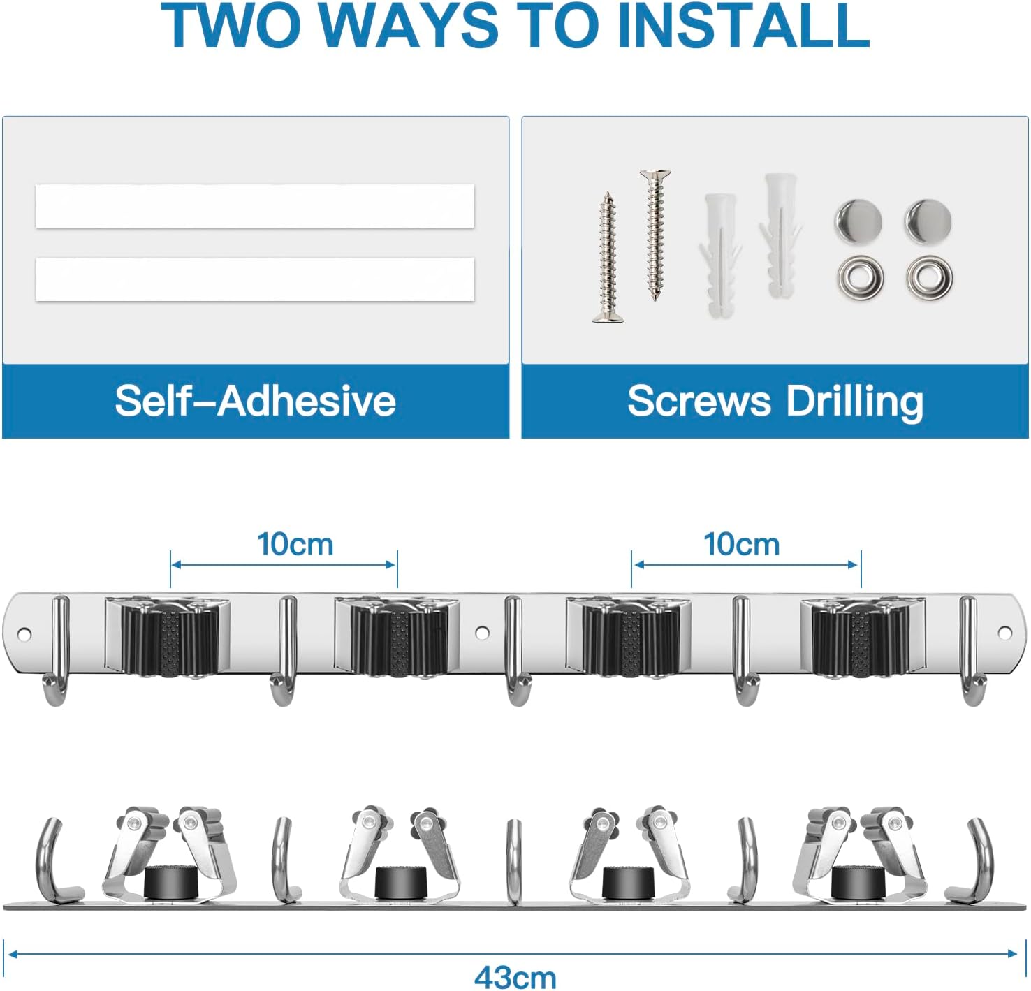 - STRONG & STURDY: Broom organizer wall mount is made of 304 stainless steel, corrosion-resistant, moisture proof and waterproof. Compared with the plastic broom rack, it's more stronger and sturdy. And this broom hanger wall mount can hold up to 200 pounds