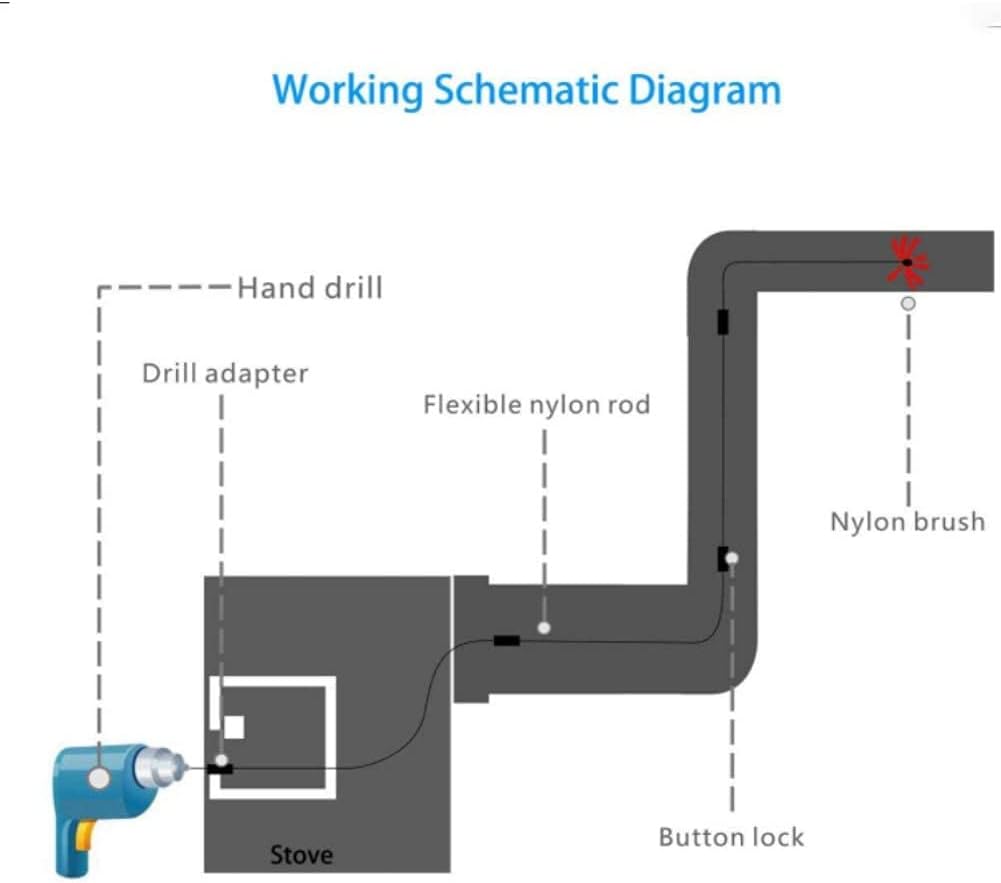 - MULTIPLE CLEANING BRUSH: Variety cleaning scenarios, used for cleaning various pipes, fireplaces, chimneys, fume hoods, dryers, etc. All hygienic problems are solved. Note: You can stick each pole with a small piece of insulation tape so that they do not fall apart.