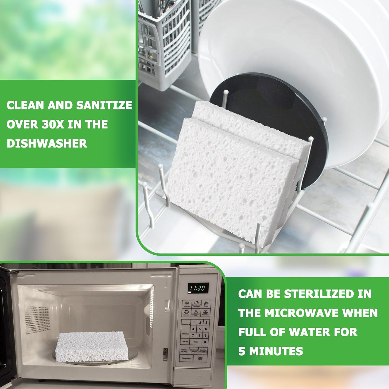 - [Long-Lasting&Multi-Purpose] The natural cellulose sponge for dishes can be knead frequently after being wet, and it is not easy to deform or break. It is reusable for a long time. The durable texture sponges make it easy to washing dishes and do household cleaning.It can be used not only for kitchen sponges, but also can be applied to bathroom, office cleaning tools for absorbing the printing ink. and makeup remover sponges and etc.