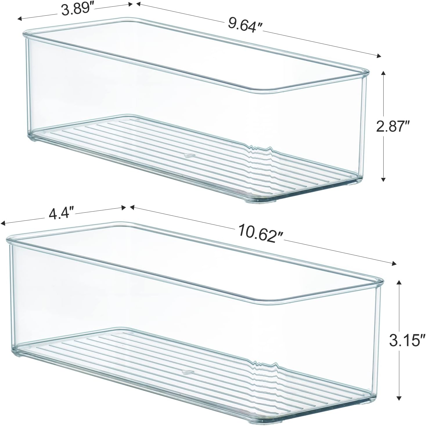- This set of storage bins contains 2 sizes (4S + 4M) to meet various scenarios, The sizes are designed for little stuffs in bathroom, drawer, fridge or pantry.
