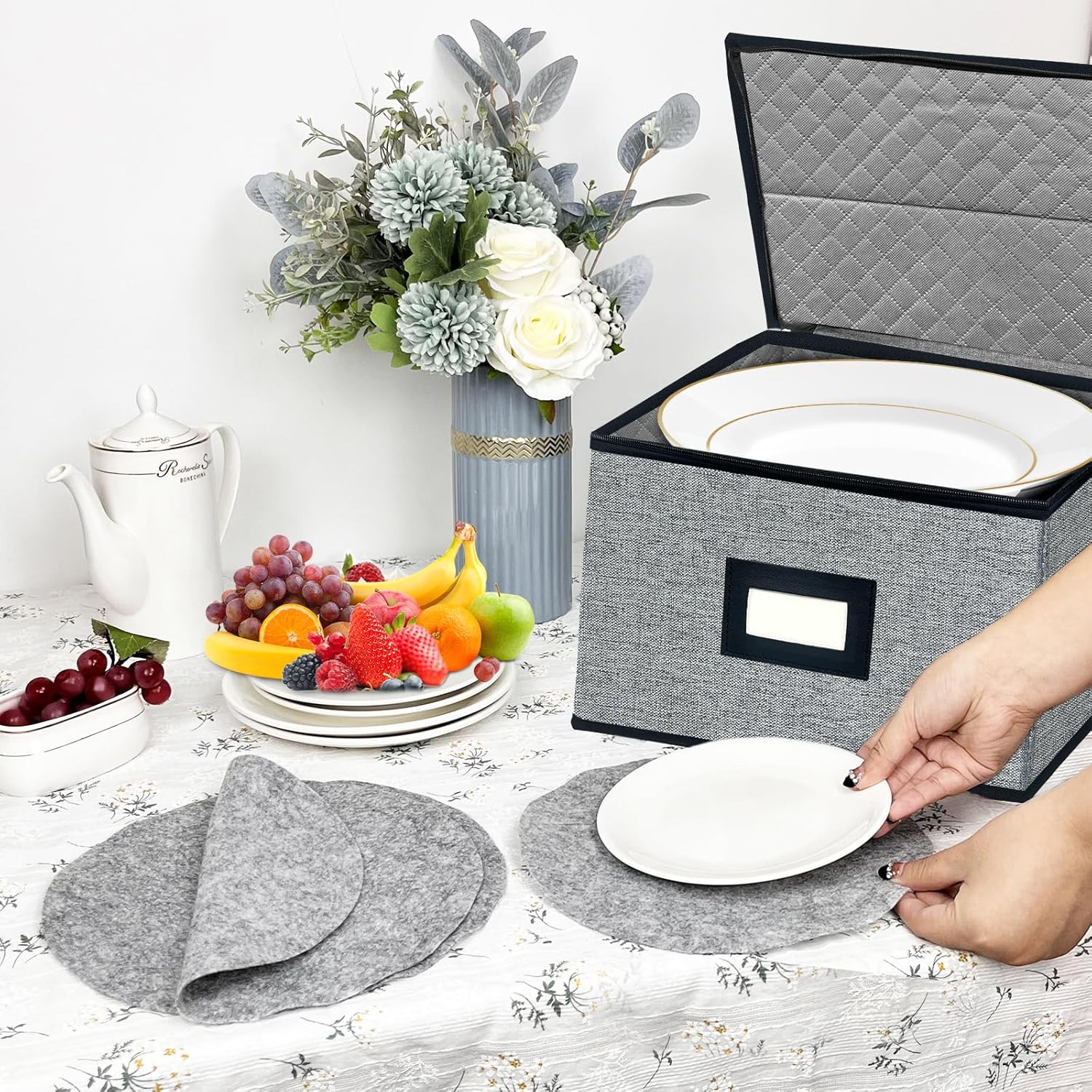 - ๐ฝ๏ธEnhanced Protection with Felt Pads - Each china storage container includes 24 felt dividers to effectively safeguard your dinnerware during transport and storage, minimizing the risk of damage to your plates.