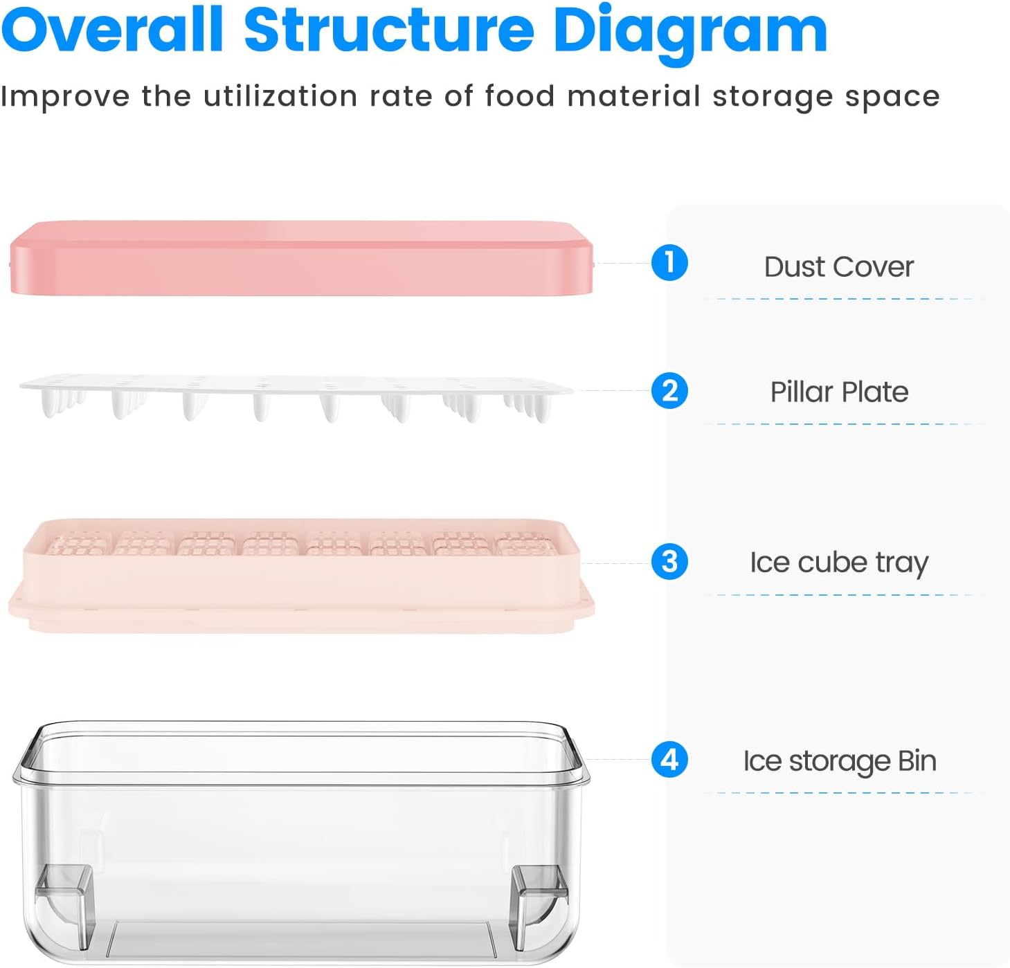 - Food Grade Material & BPA Free:This ice trays for freezer with lid and bin are made of food grade PP material, which is safe and can be frozen and used repeatedly for a long time.The ice cube tray is NOT DISHWASHER SAFE