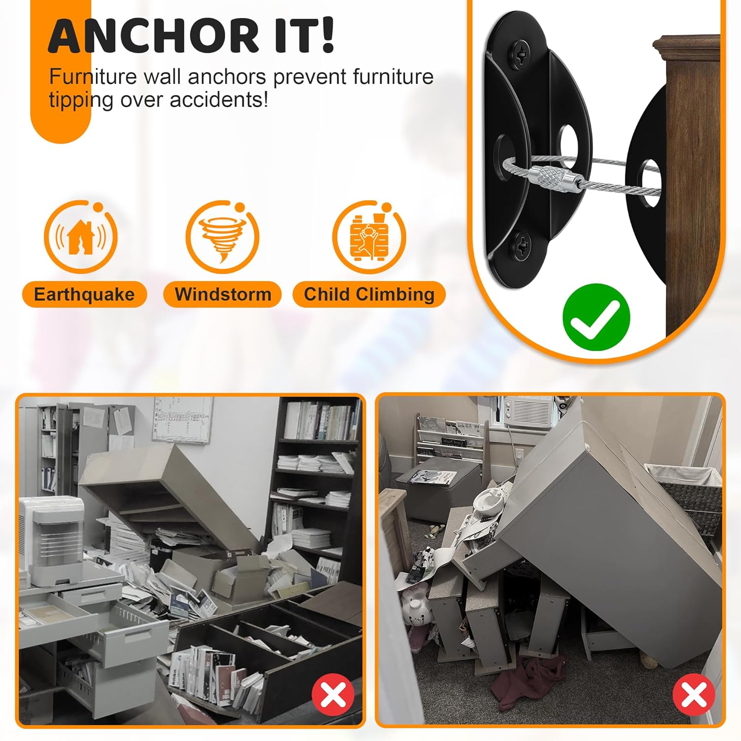 - BABY SAFETY - We know how curious children can be. When little ones climb on furniture there is a potential for a tip-over incident. The good news is baby proof furniture anchors can help to keep furniture secure in case your children pull out the dresser drawer to form a ladder and climb onto the dresser for fun. Even with up to 400 pounds of pressure, this anchor keeps furniture upright.