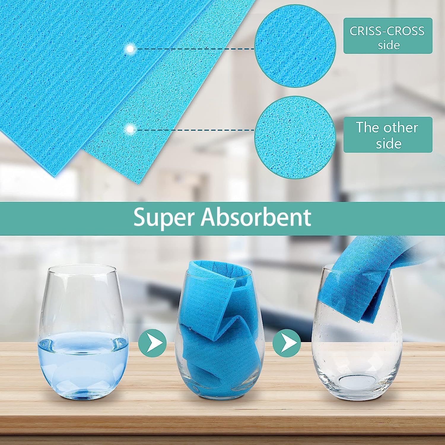 - Super Absorbent: Made from wood pulp fibers, Swedish dish cloth exhibits exceptional absorbency; it quickly absorbs liquids and moisture, allowing you to effectively deal with spills, splashes, and dampness
