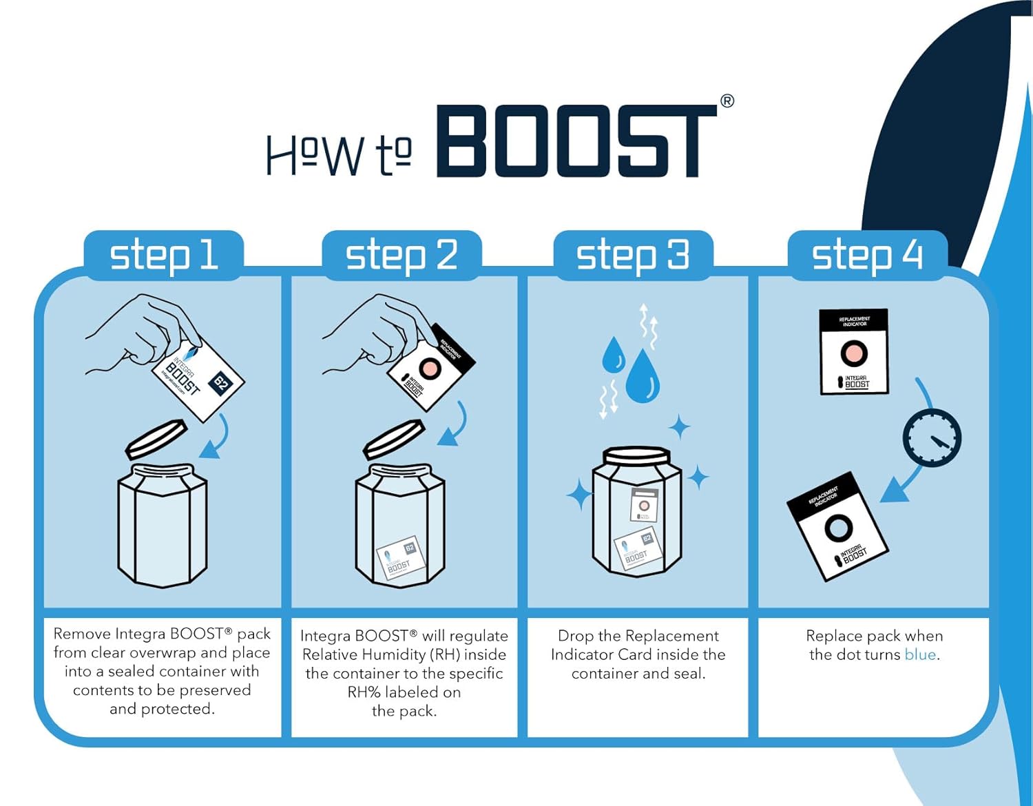 Integra Boost - 72% RH Level - 67 Gram Size - Two-Way Humidity Control Pack - Incl. Replacement Indicator Cards - Food Storage & Herbs Moisture Balancer For Up to 1 LB (Pack of 12)