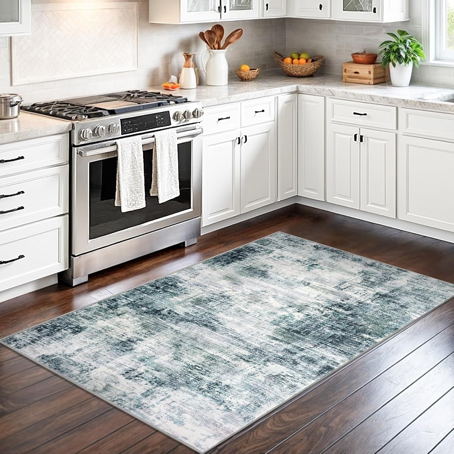 - Modern Abstract Printed Design: Transform your home with the modern abstract rug, a perfect blend of art and functionality. Printed with a modern abstract pattern, Its dynamic splashes of green, grey, and white hues add a vibrant touch to any room
