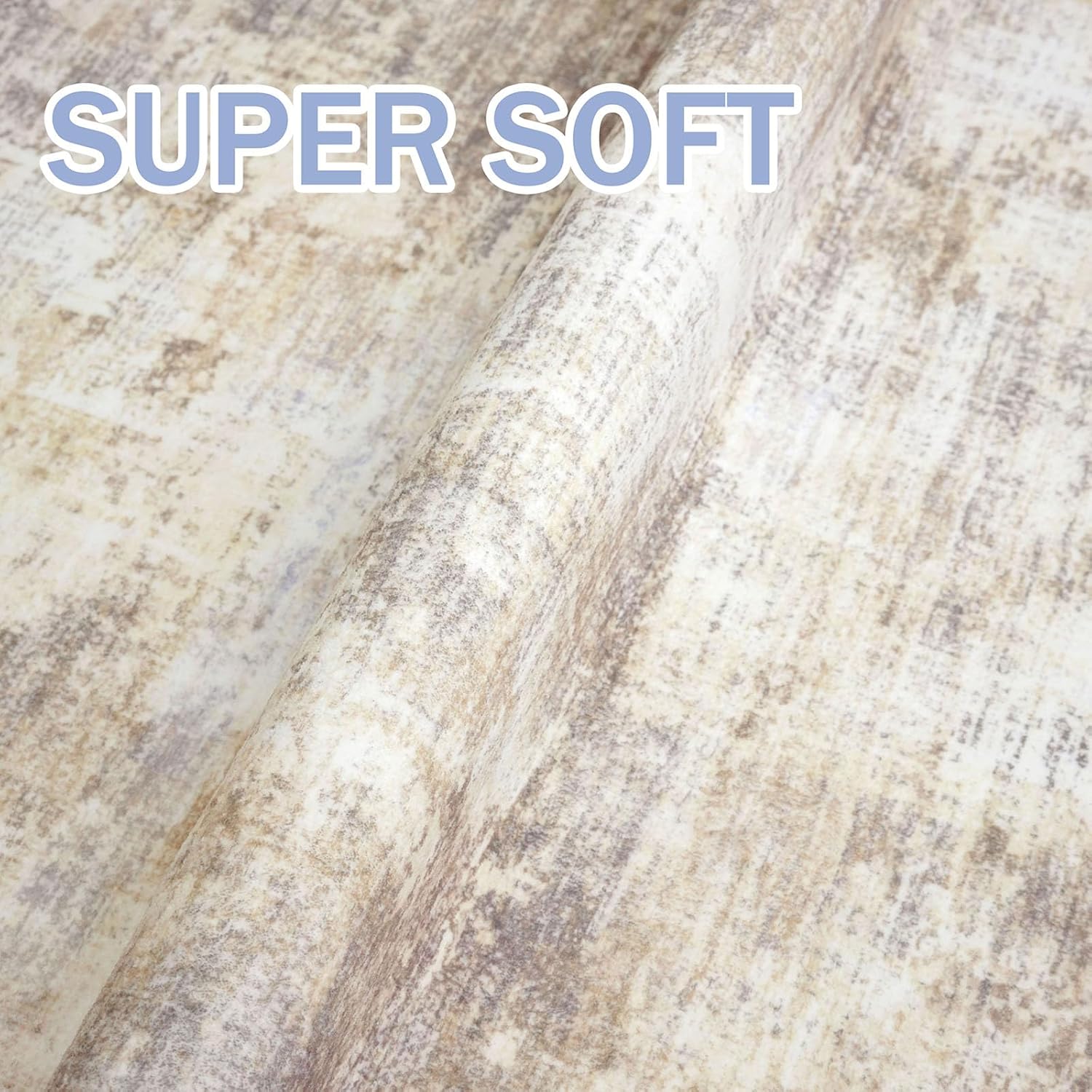 IOHOUZE Abstract Area Rugs 5x7 Ft Washable Rugs for Living Room, Non Slip Dining Room Rug, Printed Faux Wool Rugs for Bedroom, Floor Carpet for Office Nursery Playroom, Beige Brown