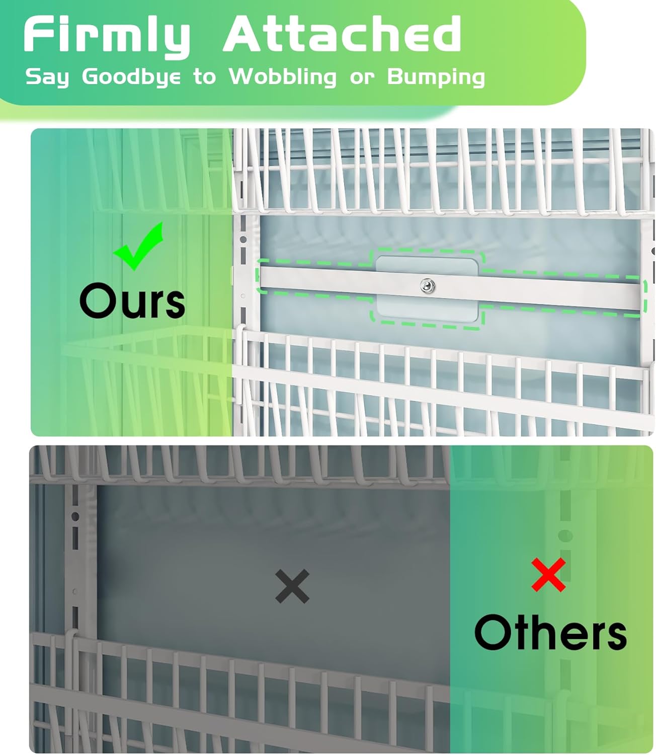 - Adjustable & Wall-Mounted: This over the door organizer can be adjusted to accommodate items of different heights. You can easily nail this rack to your wall or door for a secure and sturdy fit. The rack also features 2 adhesive stickers, which help to prevent swinging when opening and closing doors. The full basket design also ensures that your items won't slide off the back of the rack.