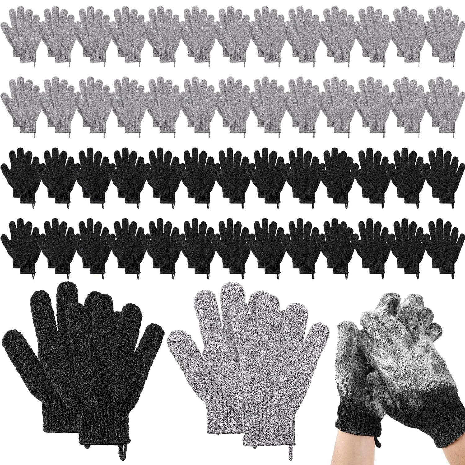 - Sufficient Quantity and Colors: you will receive 104 pieces (52 pairs) of exfoliating gloves in black and gray, each color contains 26 pairs, with their quantity and function, suitable for spa, massage, bath and shower, satisfying your daily use, and you can also share with other people