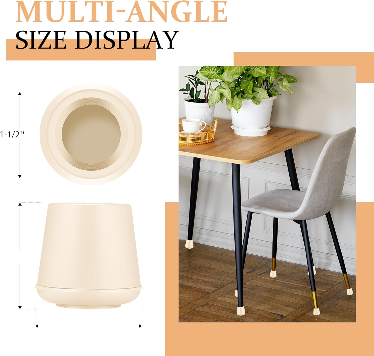 - Easy to install : The rubber leg tip is easy to install (no cutting, gluing and tools ), carefully slip on the tip over the end of your table or chair leg. The furniture cups inner thread design can easy put on and hold in-place not easy to fall off