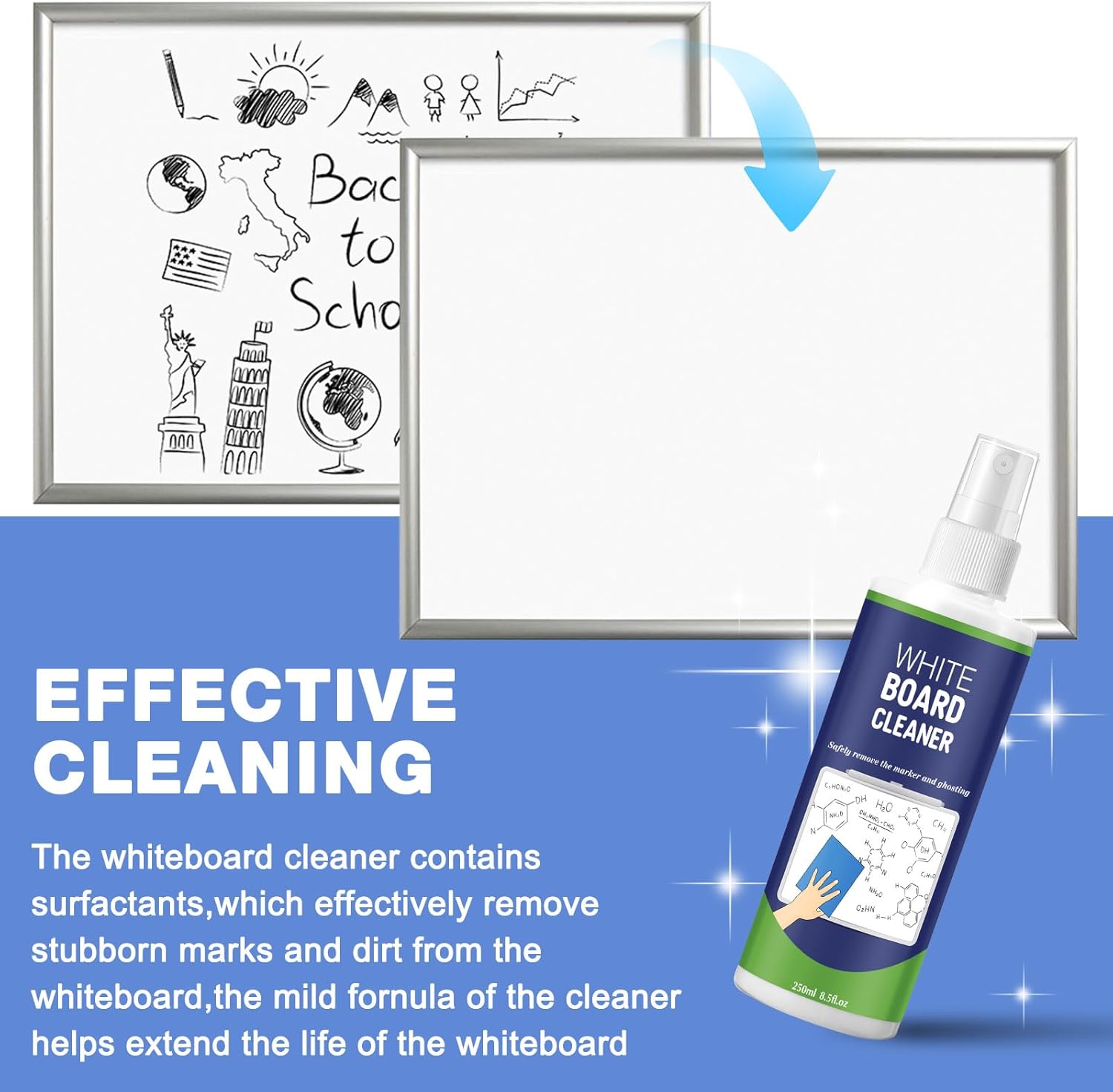 - Easy to Use: our whiteboard cleaner spray can be evenly distributed on the whiteboard surface and precisely targeted where needed, thus minimizing waste; Easy to use and make your whiteboard look cleaner