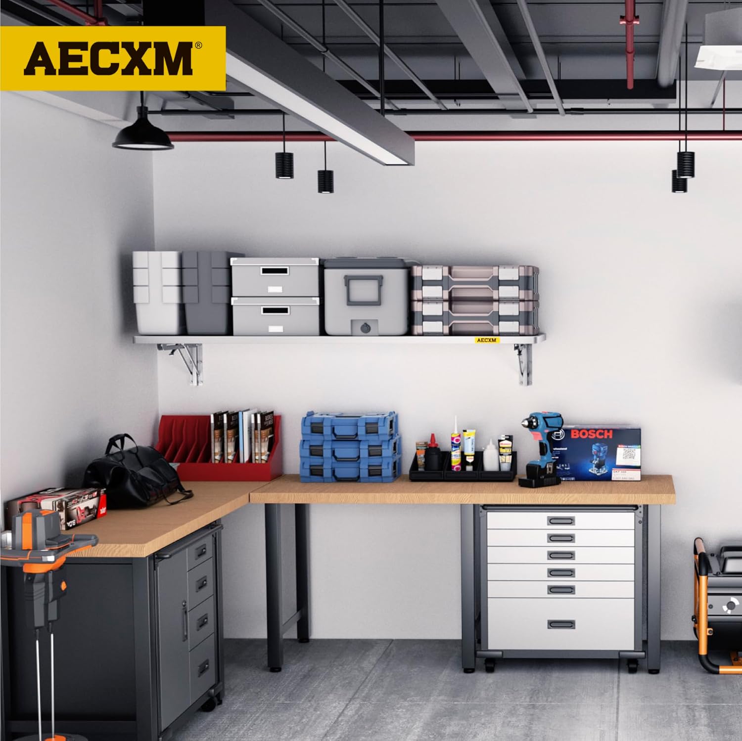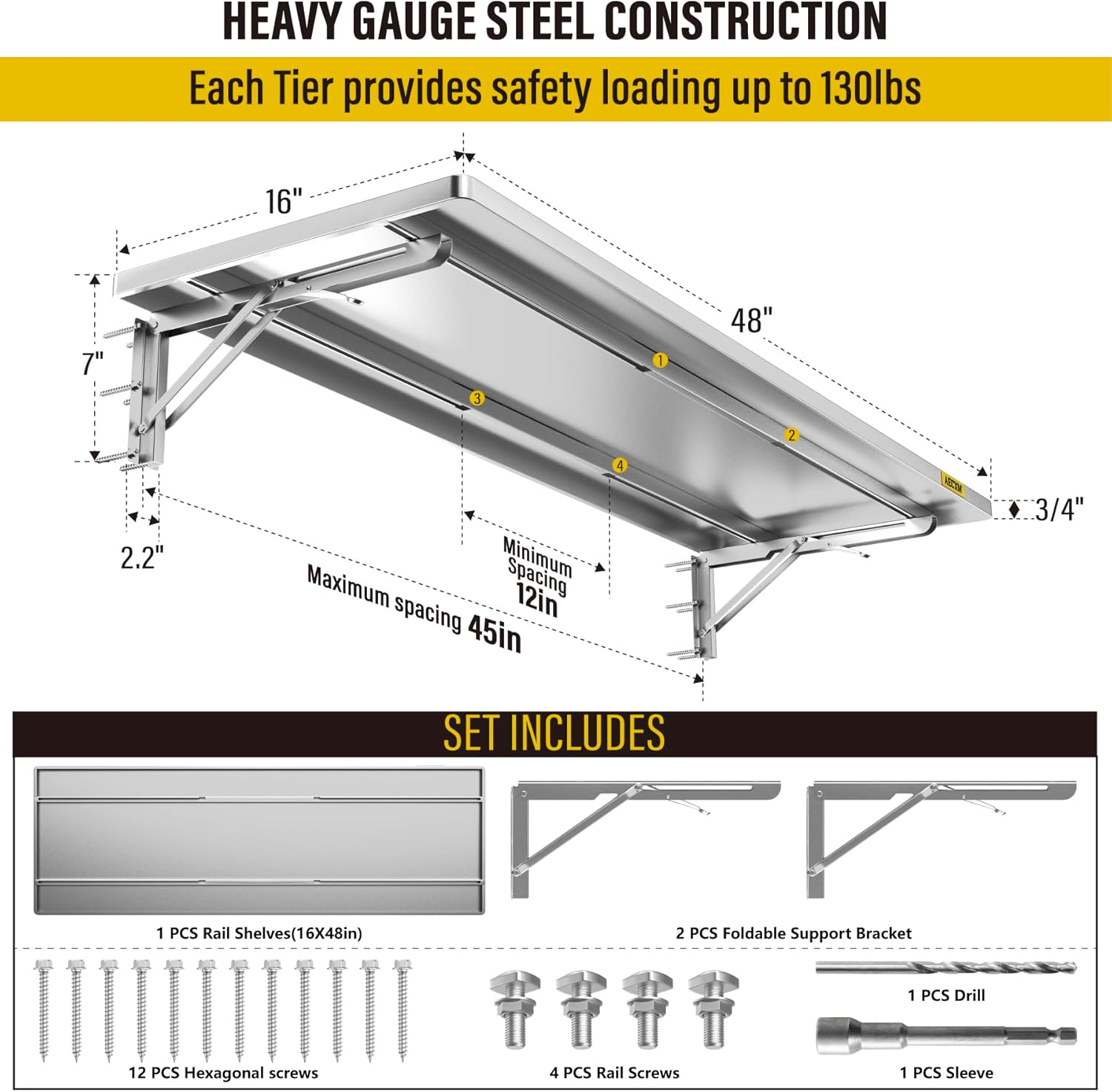 - KIT INCLUDES:Includes 1pcs of face plate; 2 Folding Brackets; 12 Hexagonal screws (Hardened ∅0.2" L/2"); 4 Sets of rail attachment bolts; 1 Drill bit; 1 Socket; 1 installation manual. All hardware of AECXM Professional Series Wall Mounted Shelf are under strict quality control and testing, We strive to provide our customers with a quality shopping experience, If you have any questions, Please feel free to contact us