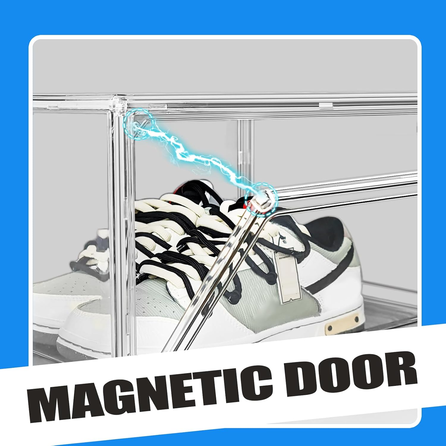 - Magnetic Door:The shoe box door adopts the magnetic design, and the opening and closing of the door can be realized by pushing or pulling gently. Compared with traditional clamshell or snap shoe boxes, the magnetic door opens and closes more easily and smoothly