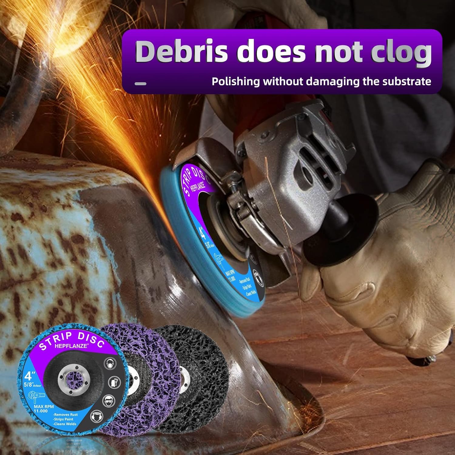 - 【Usage Specification】Please be sure to wear a mask when using the strip disc to prevent inhalation of dust. We recommend that you wear gloves when using it. Please be sure to use the product below 11,000 RPM. Please do not press hard when using the disc, just light contact with the surface and the rust will be removed.