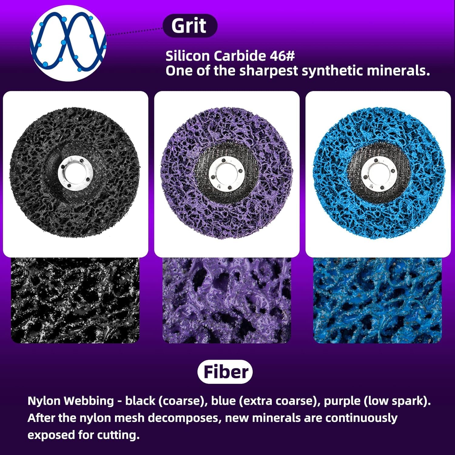 - 【MATERIAL】Nylon fibers on strip discs are interspersed with silicon carbide minerals. We chose it because it cuts more aggressively than minerals in a finer grade. Among synthetic minerals, silicon carbide is one of the sharpest. It breaks down faster than aluminum oxide but leaves a finer finish.