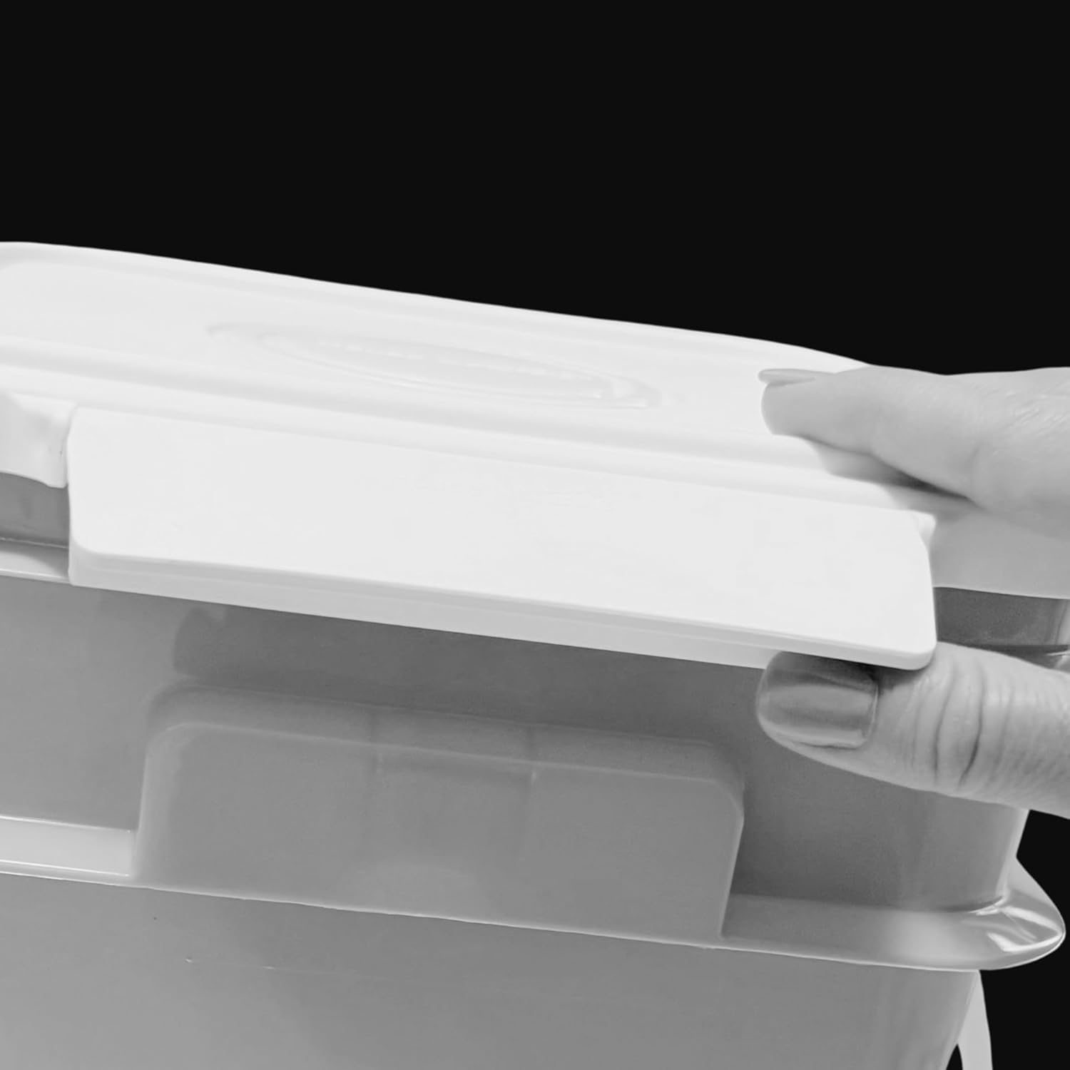 House Naturals 4 Gallon Square Food Grade Bucket Pail with Plastic Handles and Lid (Pack of 3) Made in USA containers (White - Blue lids)
