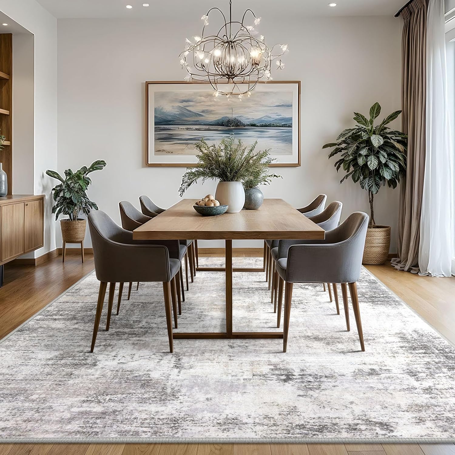 IOHOUZE Abstract Area Rugs 8x10 Ft Washable Large Rugs for Living Room, Non Slip Dining Room Rug, Printed Faux Wool Rugs for Bedroom, Floor Carpet for Office Nursery Playroom, Grey Beige