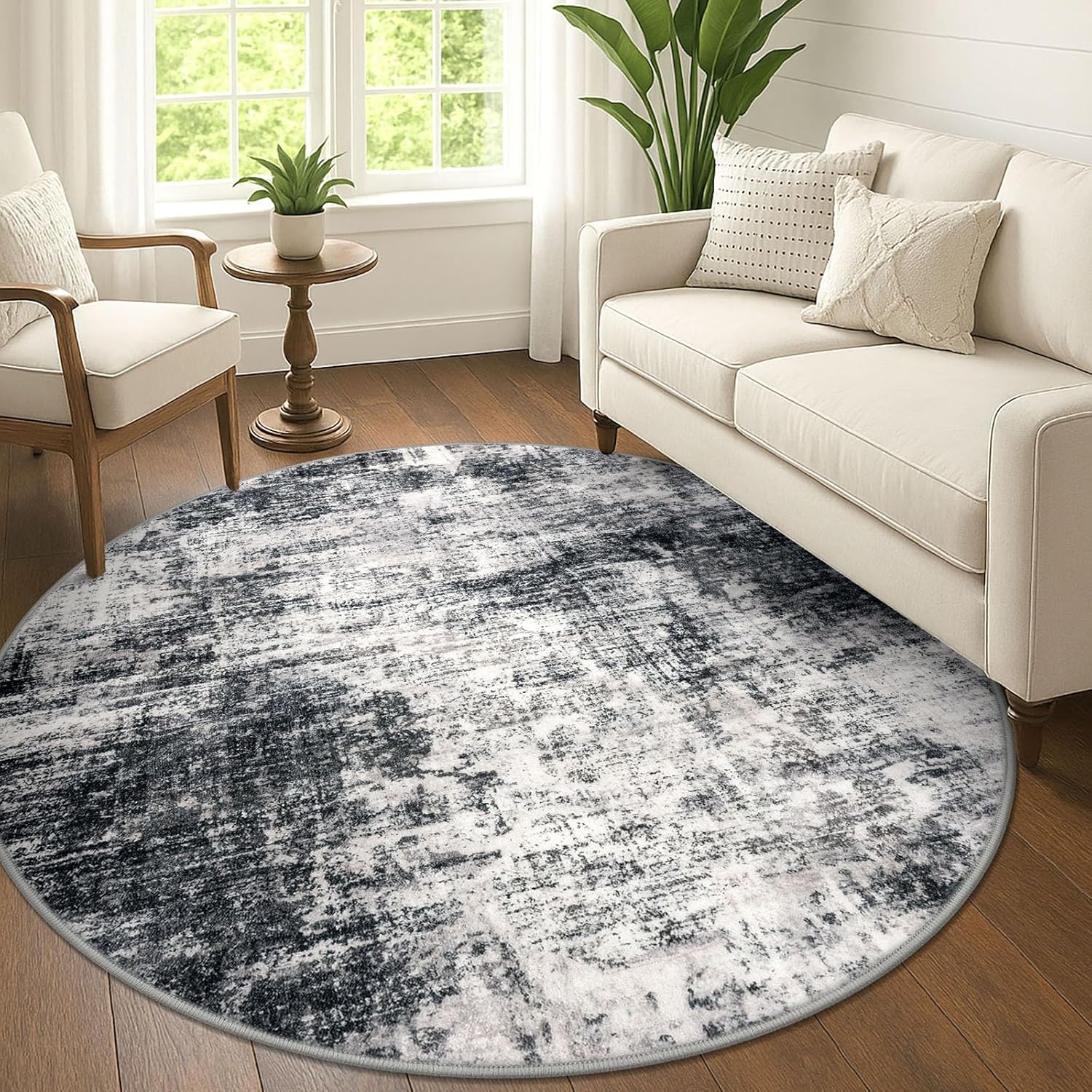 - Non-Slip Rubber Backing: Designed with a non-skid TPR backing, this 6x6 foot round rug stays securely in place, eliminating the need for an extra rug pad. Ideal for families with children and pets, it remains steady even in high-traffic areas