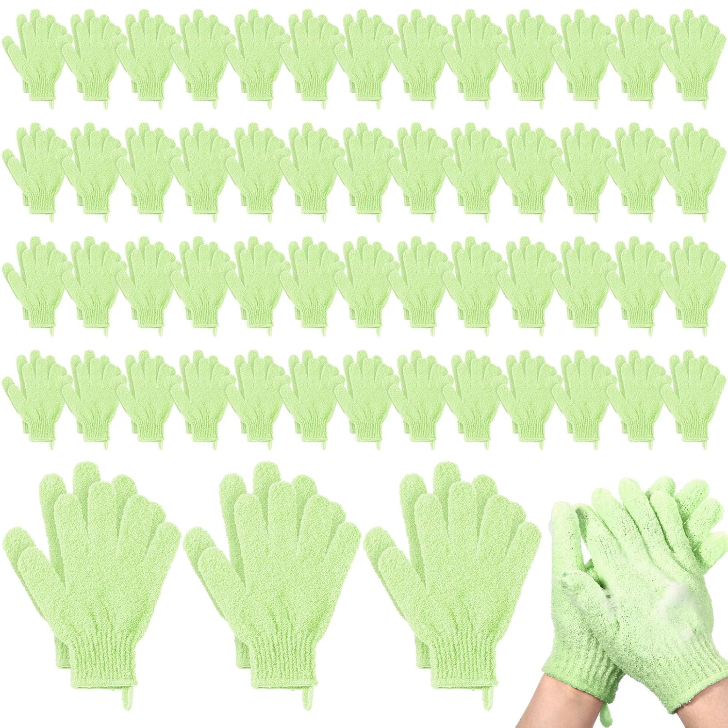 - Sufficient Quantity and Colors: you will receive 104 pieces (52 pairs) of green exfoliating gloves, with their quantity and function, suitable for spa, massage, bath and shower, satisfying your daily use, and you can also share with other people