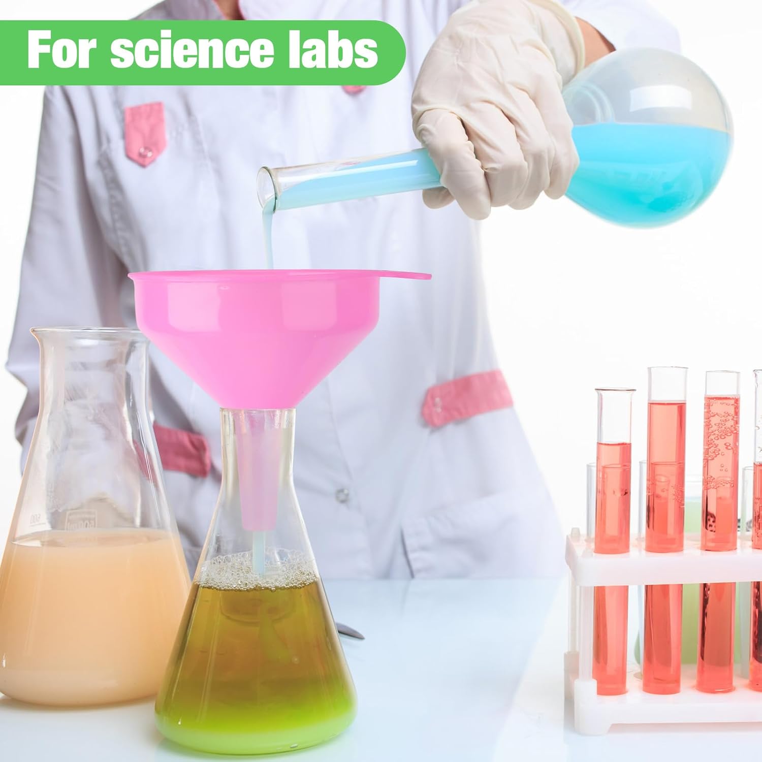 - 9 Pcs Funnel Set with 3 Vibrant Colors: good for lab/school use, this color-coded system (e.g., blue for water, yellow for oil) enhances efficiency and safety during liquid/dry chemical separation tasks